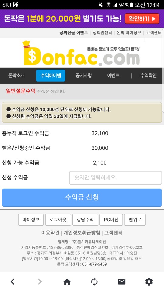 돈팍 프리미엄 회원 가입하면 한달 로그인 수익 3만원